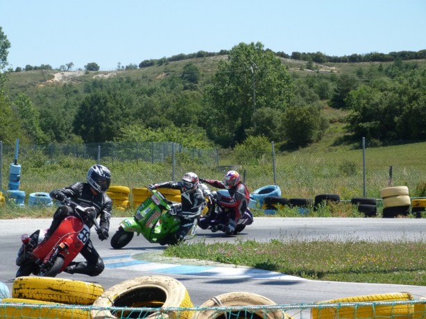 Vespas y Lambrettas dándolo todo en un bonito día de verano en el circuito masquekarting situado entre Medina de Pomar y Villarcayo (Burgos).