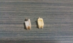 La bomba de aceite por dentro, la posible causa del gripaje. El funcionamiento es el siguiente: Por el primer orificio de abajo llega el aceite directamente del depósito, en ese mismo orificio se encuentra una válvula antiretorno, una pequeña bola metálica incrustada en un casquillo de plastico. En el orificio del centro se bombea el aceite hasta el carter con esta rueda dentada excentrica, su eje actúa como un pistón.