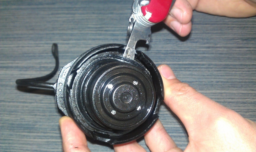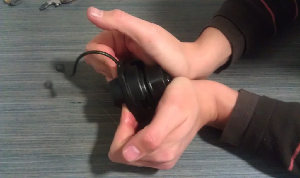 Los tapones de este tipo llevan un sistema que deja «loco» el asa para que no se pueda desenroscar, el tapon gira en los dos sentidos pero no desenrosca evitando el acceso al depósito, si giramos la llave, el asa se bloquea y nos permite desenroscar. Cuando se rompe el bombín, el tapón se puede desenroscar sin necesidad de llave.