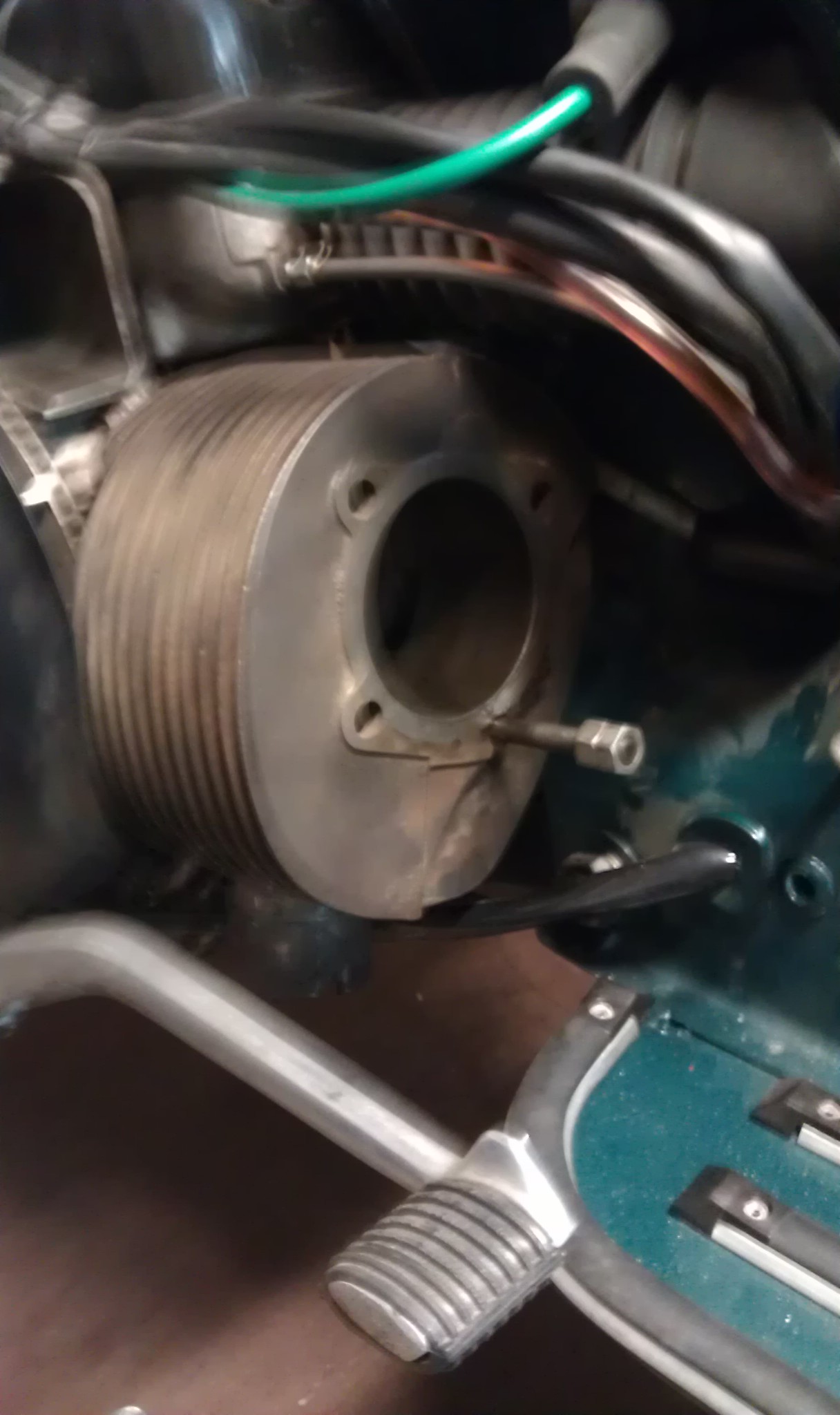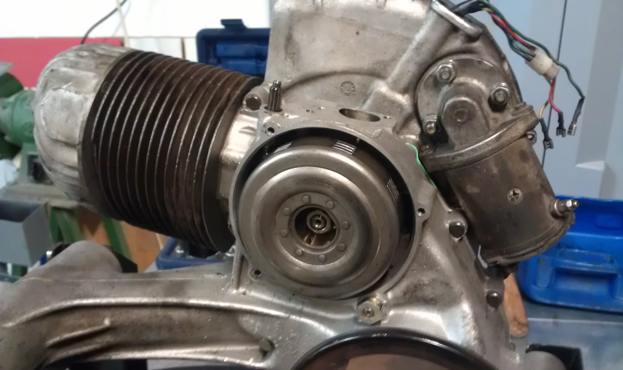 En el lado contrario, embrague con los discos cambiados no hace mucho y motor de arranque. Un dato curioso, mi motor no lleva la tuerca almenada, esta es normal aunque rosca a derechas.