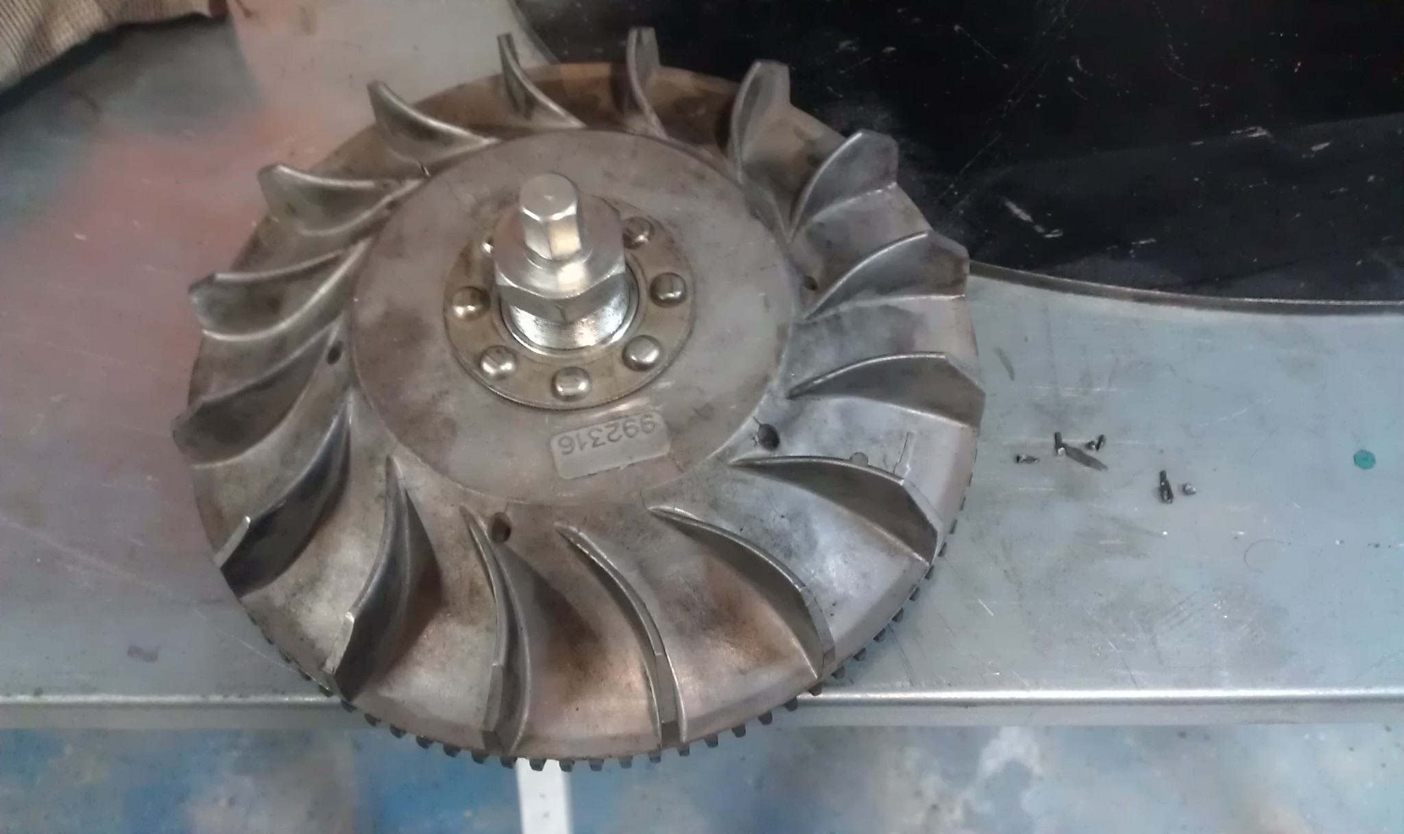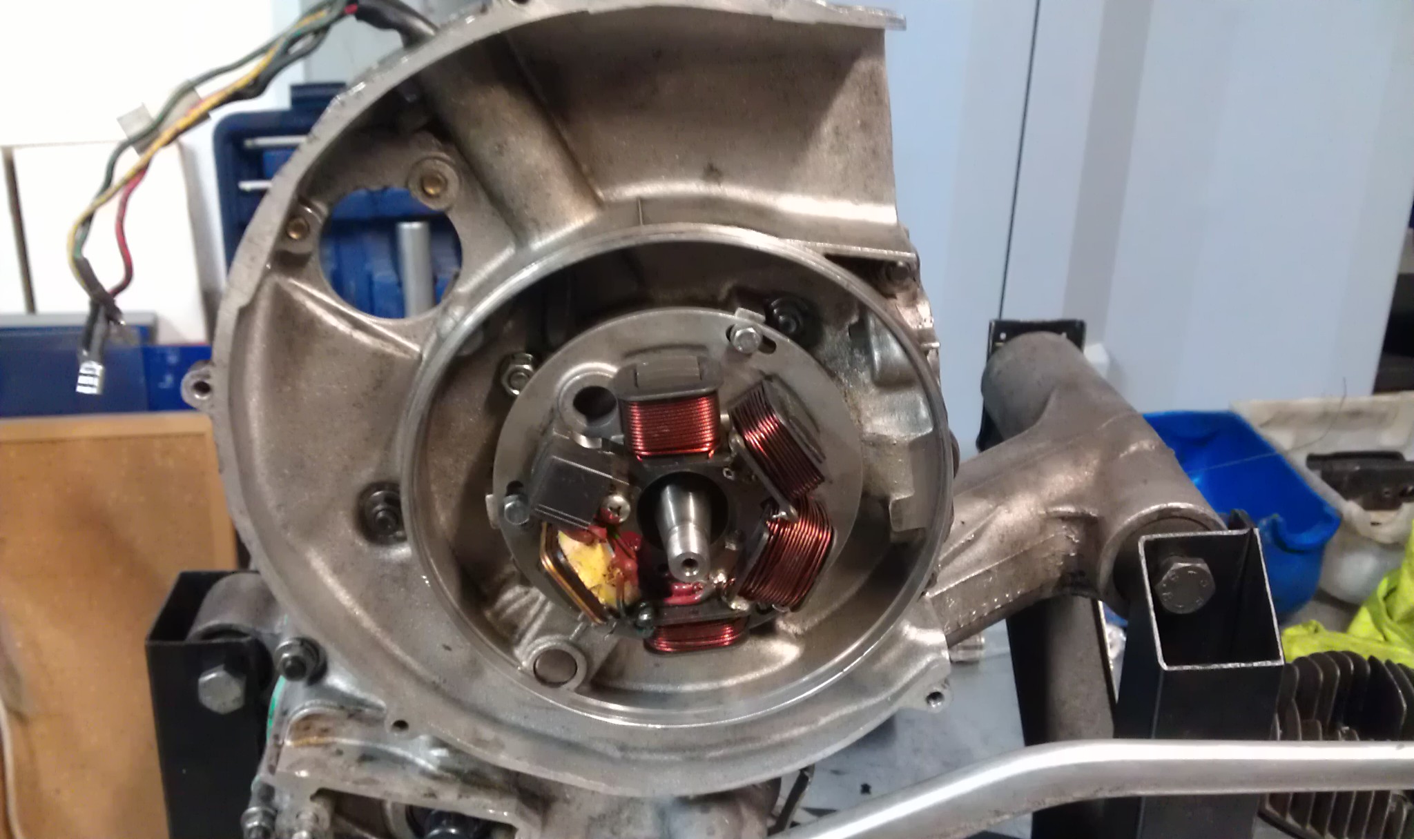 Lo primero el volante magnético, yo uso una cuña de madera para sacar la tuerca. Después con la ayuda del extractor cedido por Rul (gracias tío), coser y cantar.