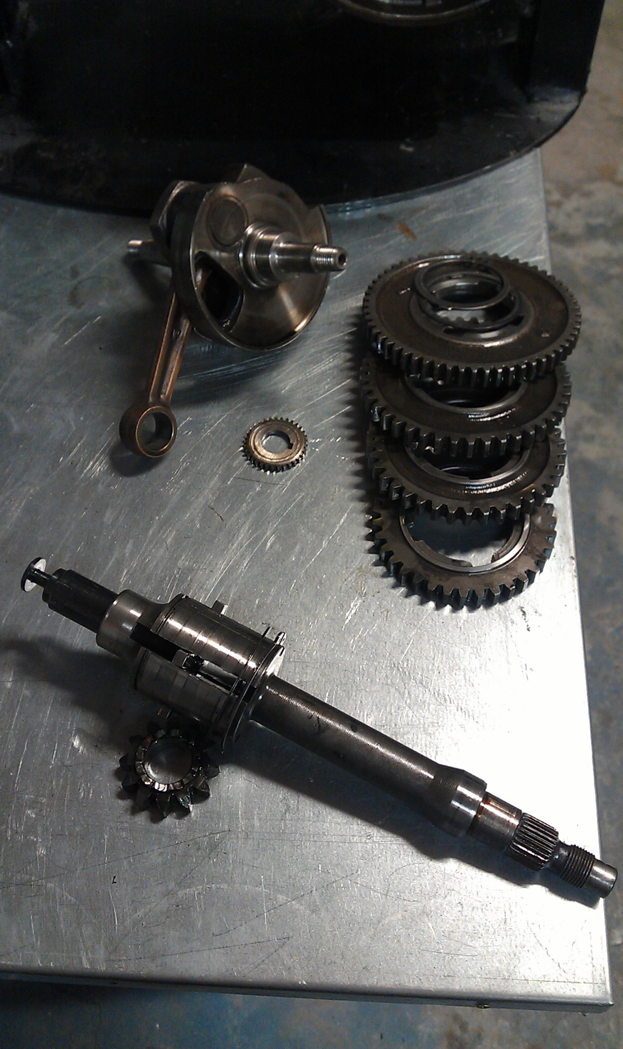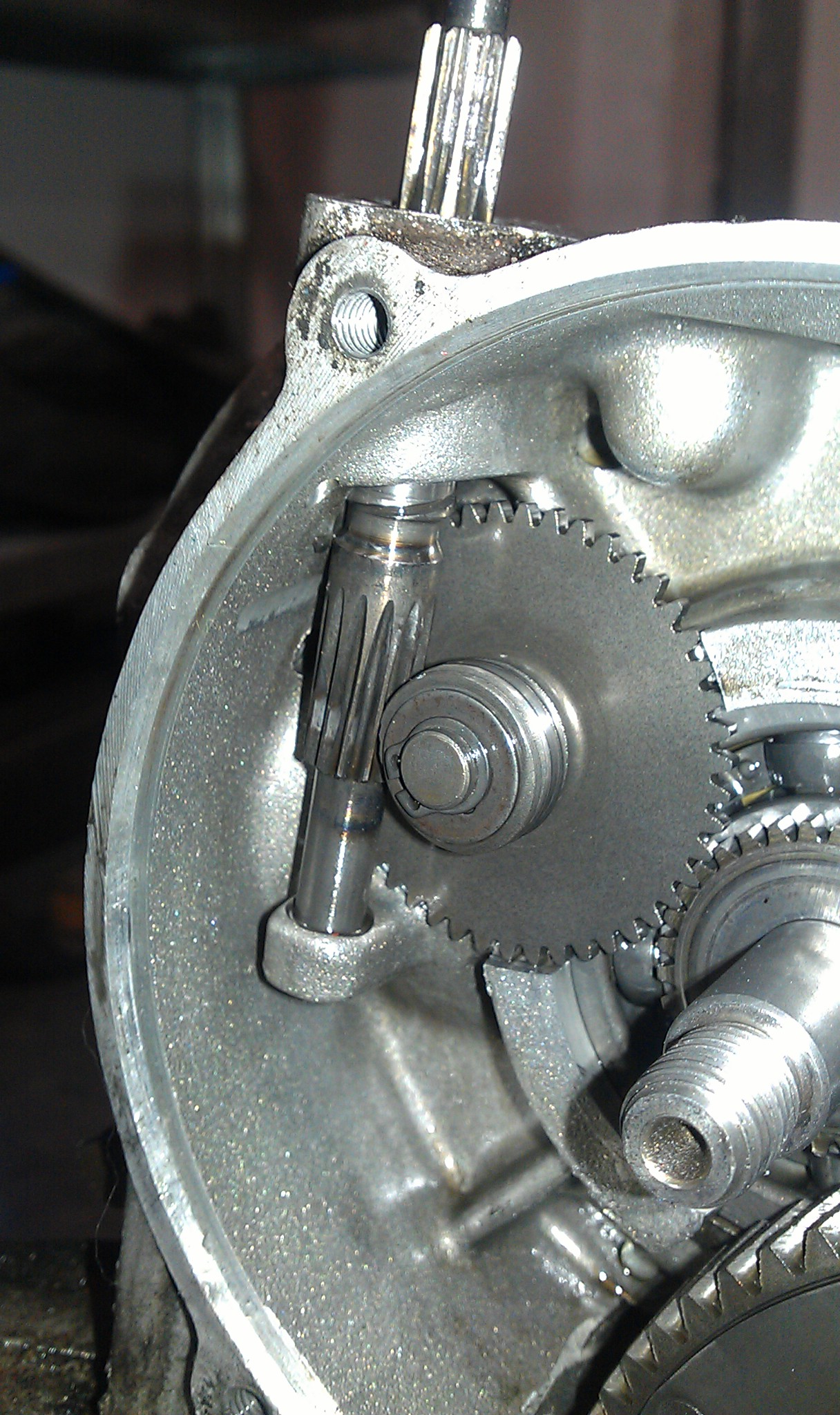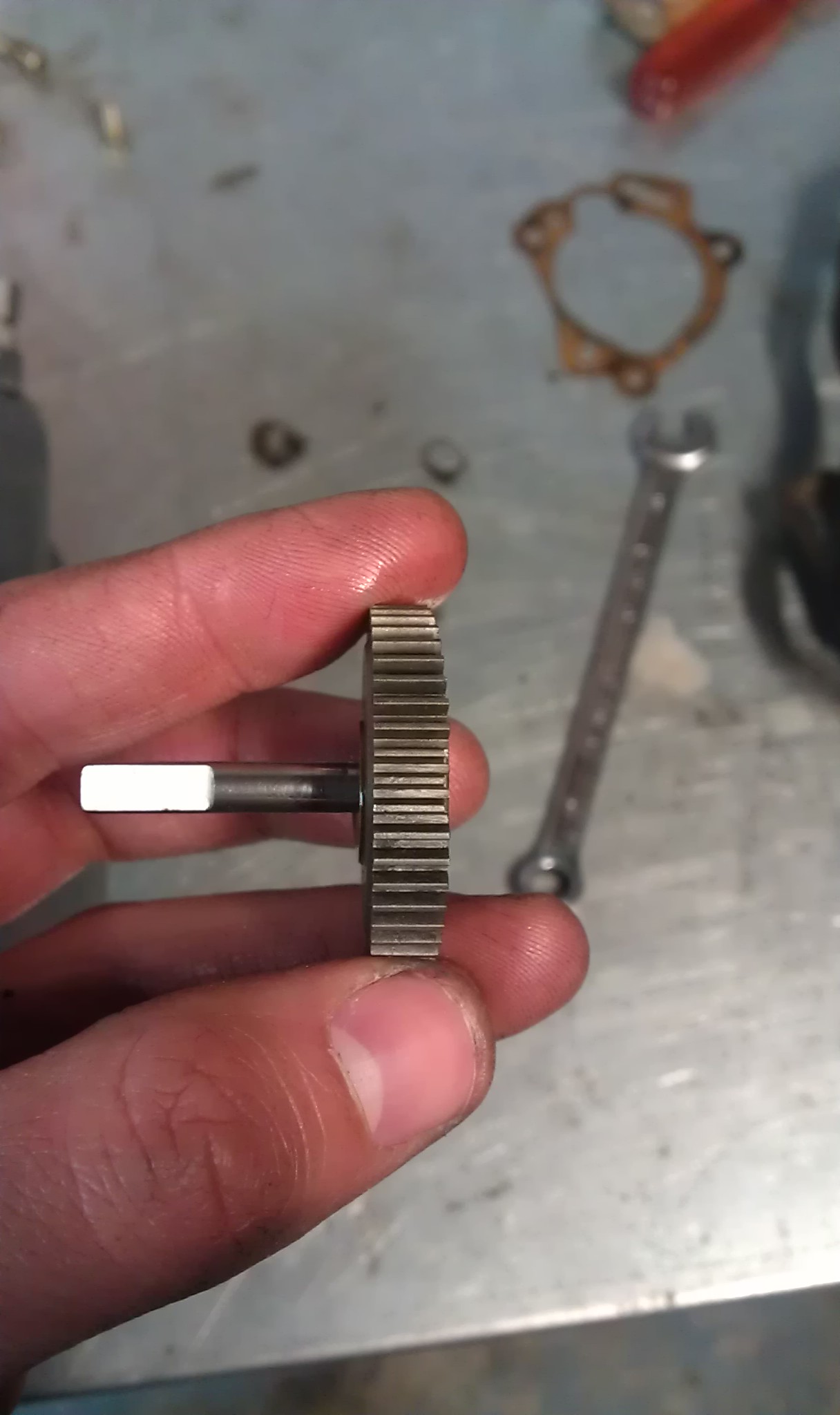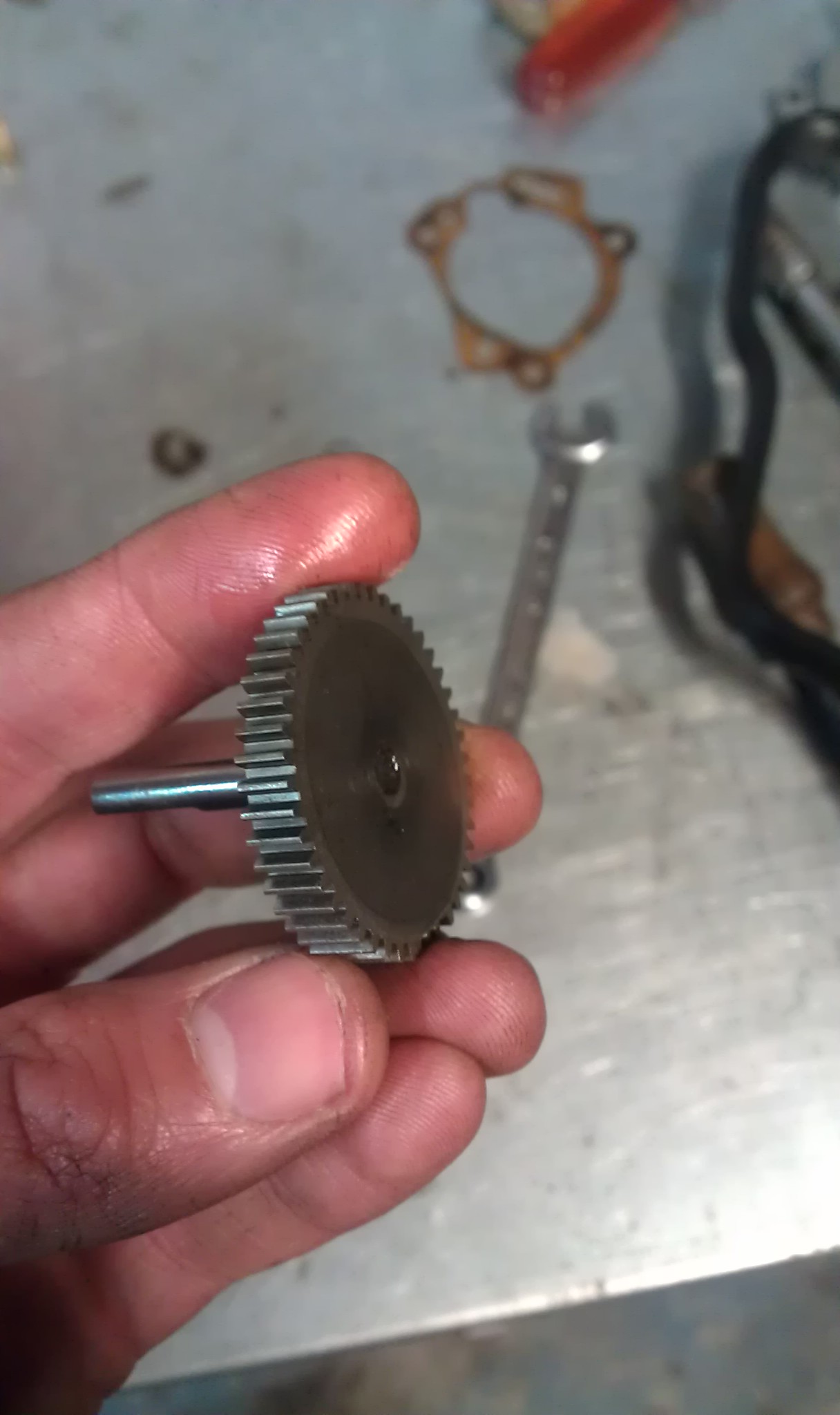 El eje que mueve la bomba, si queremos anular el engrase separado por que no nos fiamos (cosa muy respetable), yo quitaría este eje y la rueda dentada para no arrastrar piezas innecesarias a parte de colocar una junta de carburador sin mezcla separada, así el motor no tiene entradas de aire indeseables.