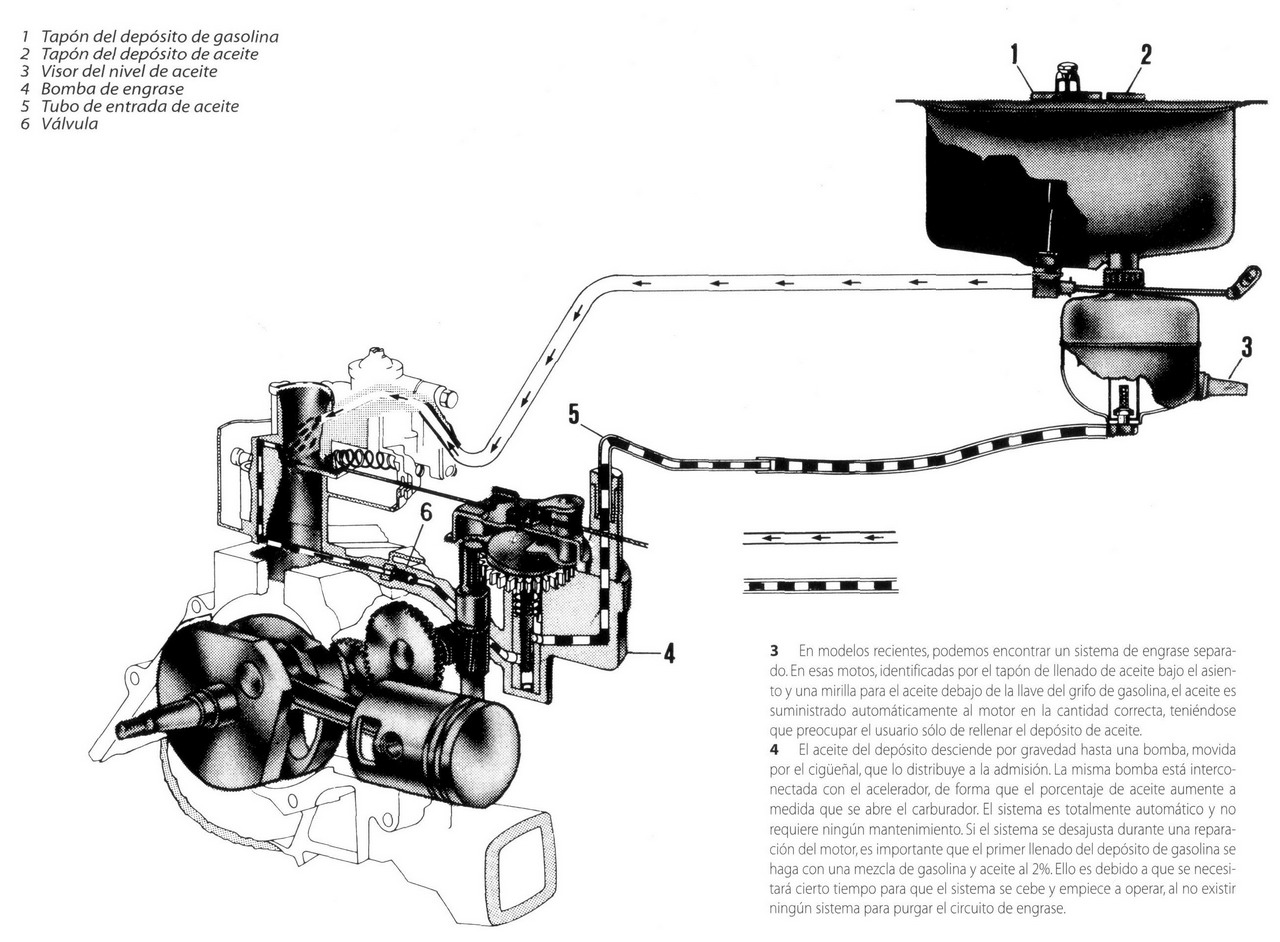 Mi conclusión después de todo es que la moto se gripó por falta de lubricación, o por que el rodamiento de agujas del cigüeñal estaba en las últimas, así que a partir de ahora mezclo al 1% la gasolina directamente en el depósito más lo que saque la bomba. De momento no noto la moto gorda ni me tira humo blanco por el escape.