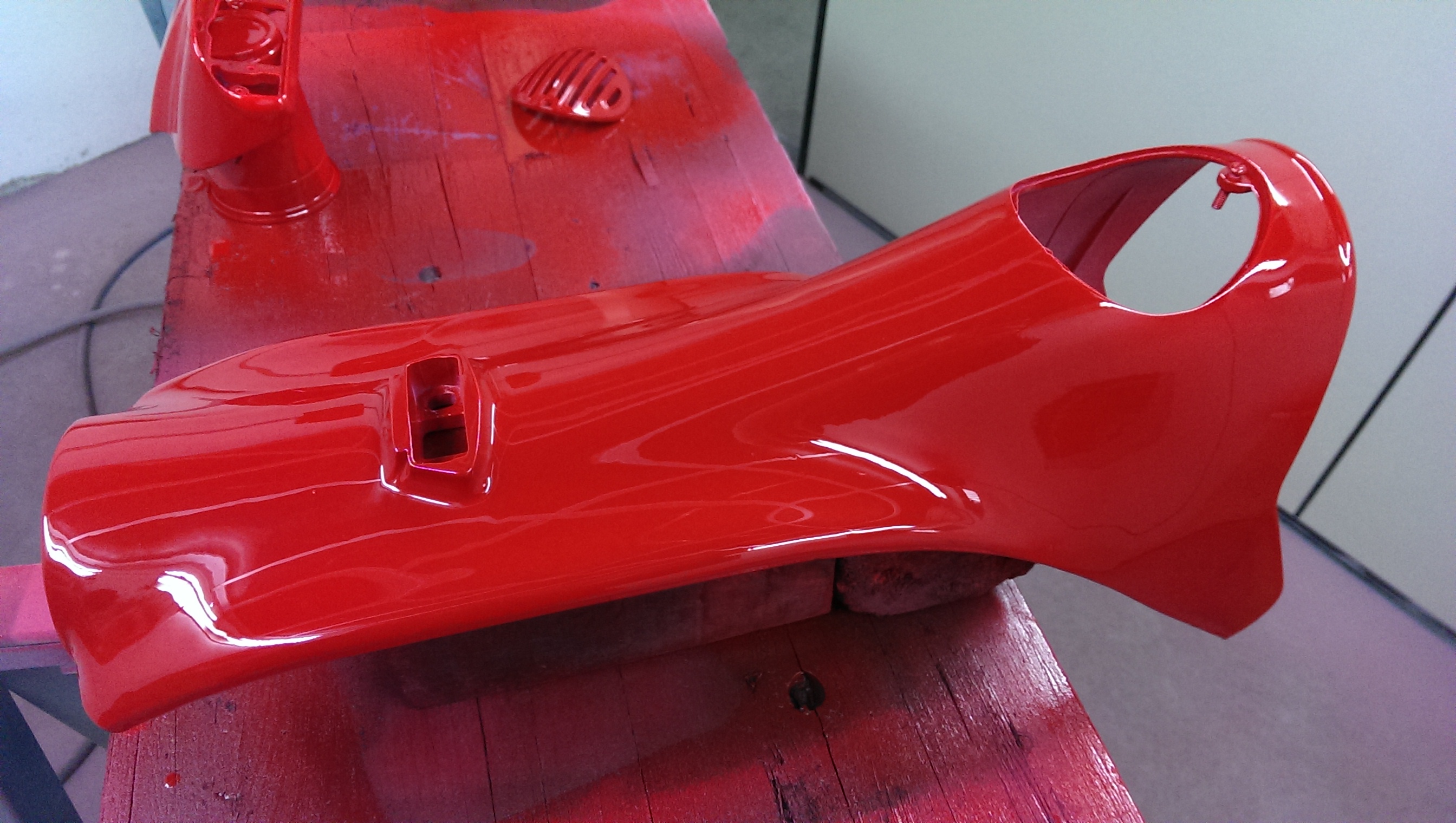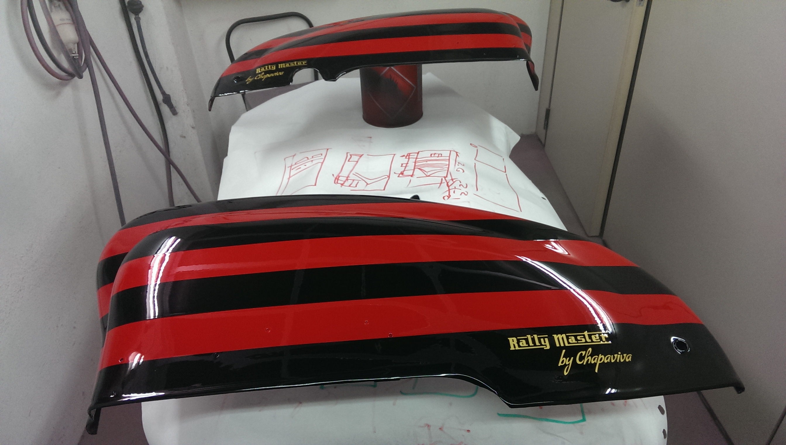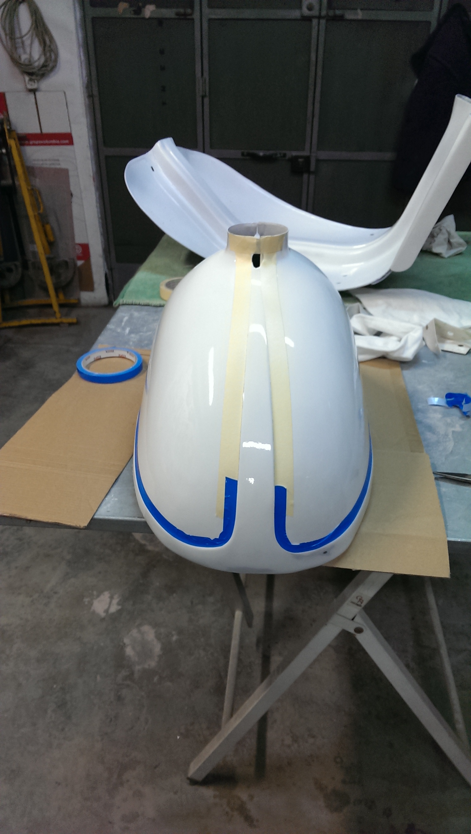 Una vez que la moto fué revisada completamente para descartar averías pasamos a la pintura, colores BMW al agua, vinilos y diseño propio.