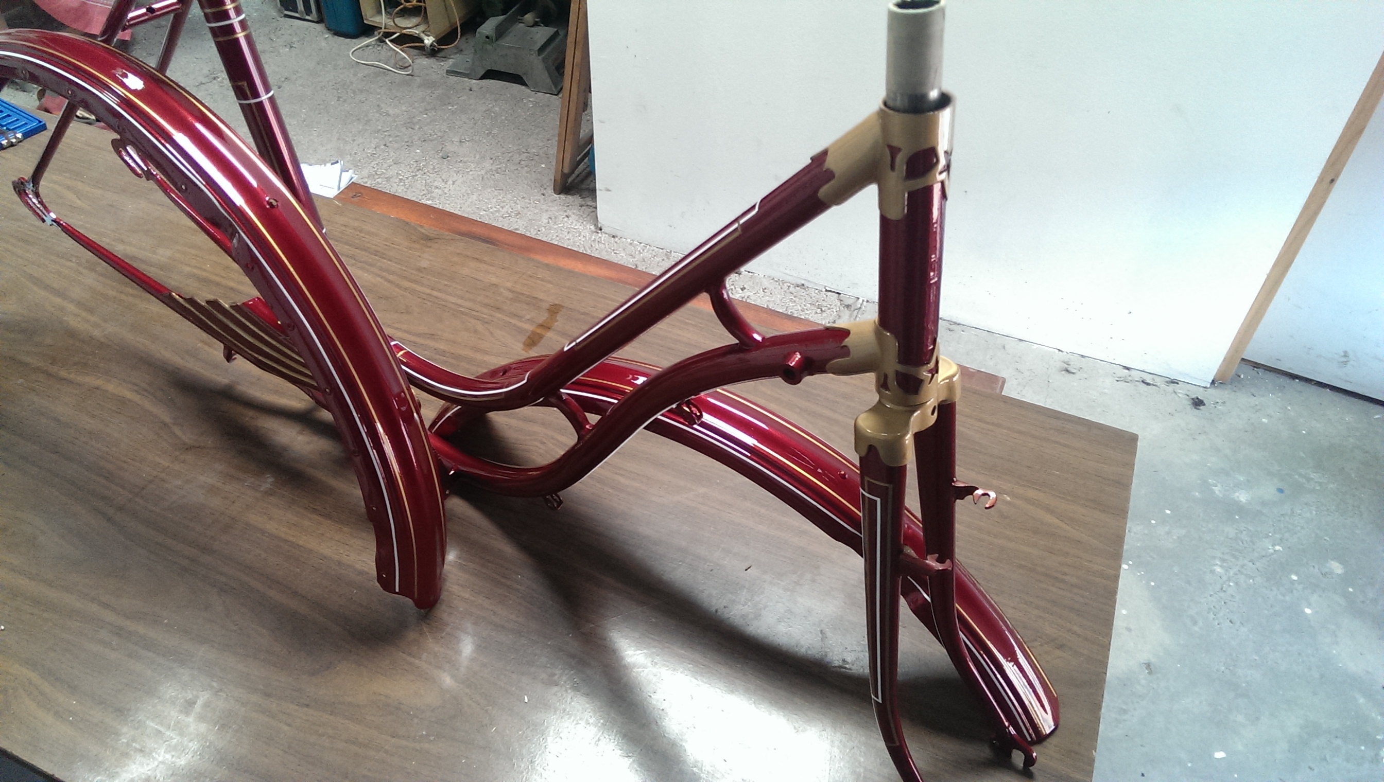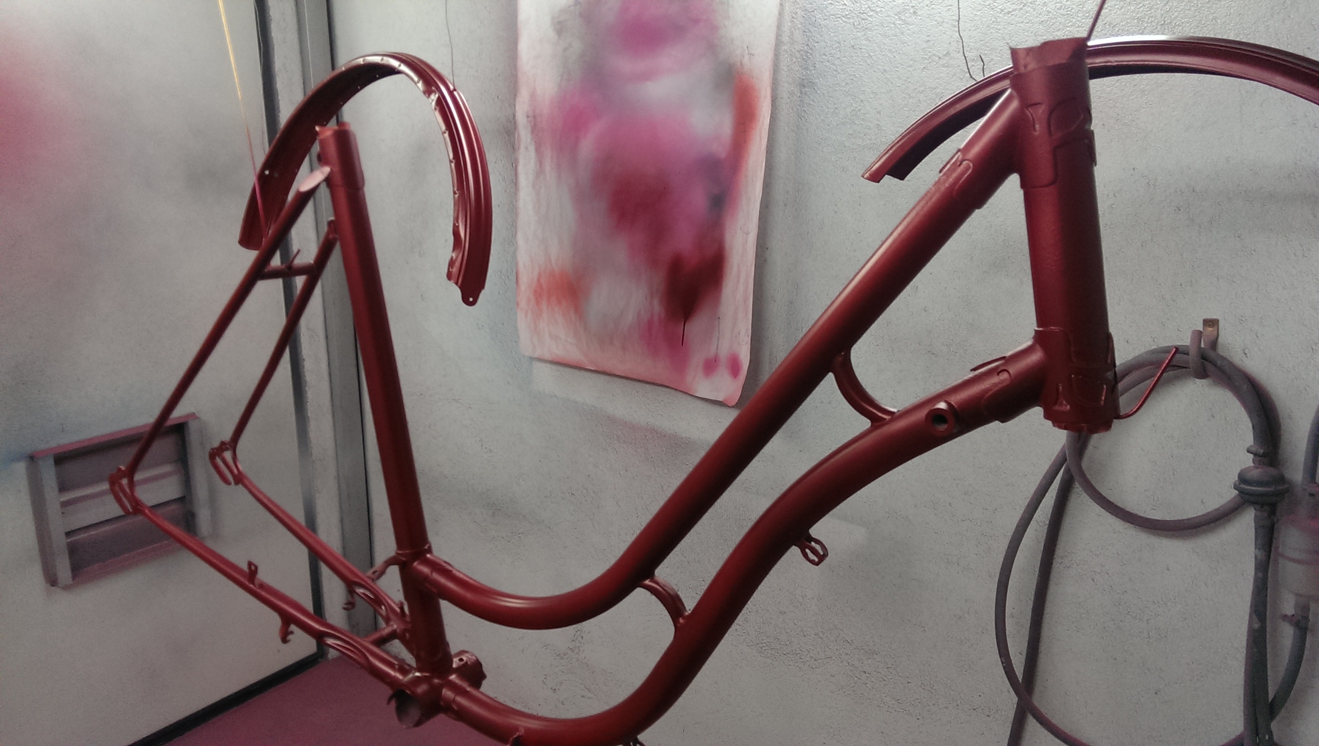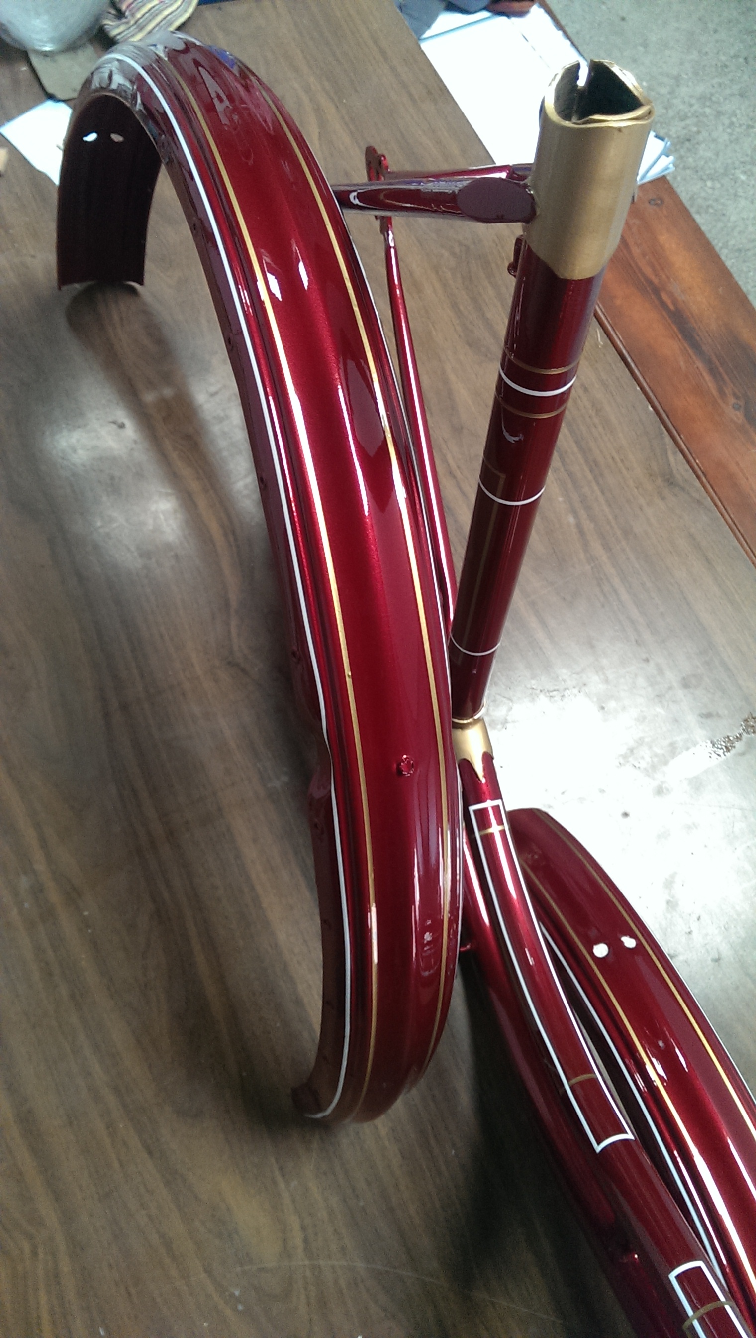 Partimos de un cuadro modelo «Señora Standard»en buenas condiciones, con pequeñas abolladuras que reparamos con masilla de carrocero y completamente lijado por el propietario, un trabajo en chapaviva!