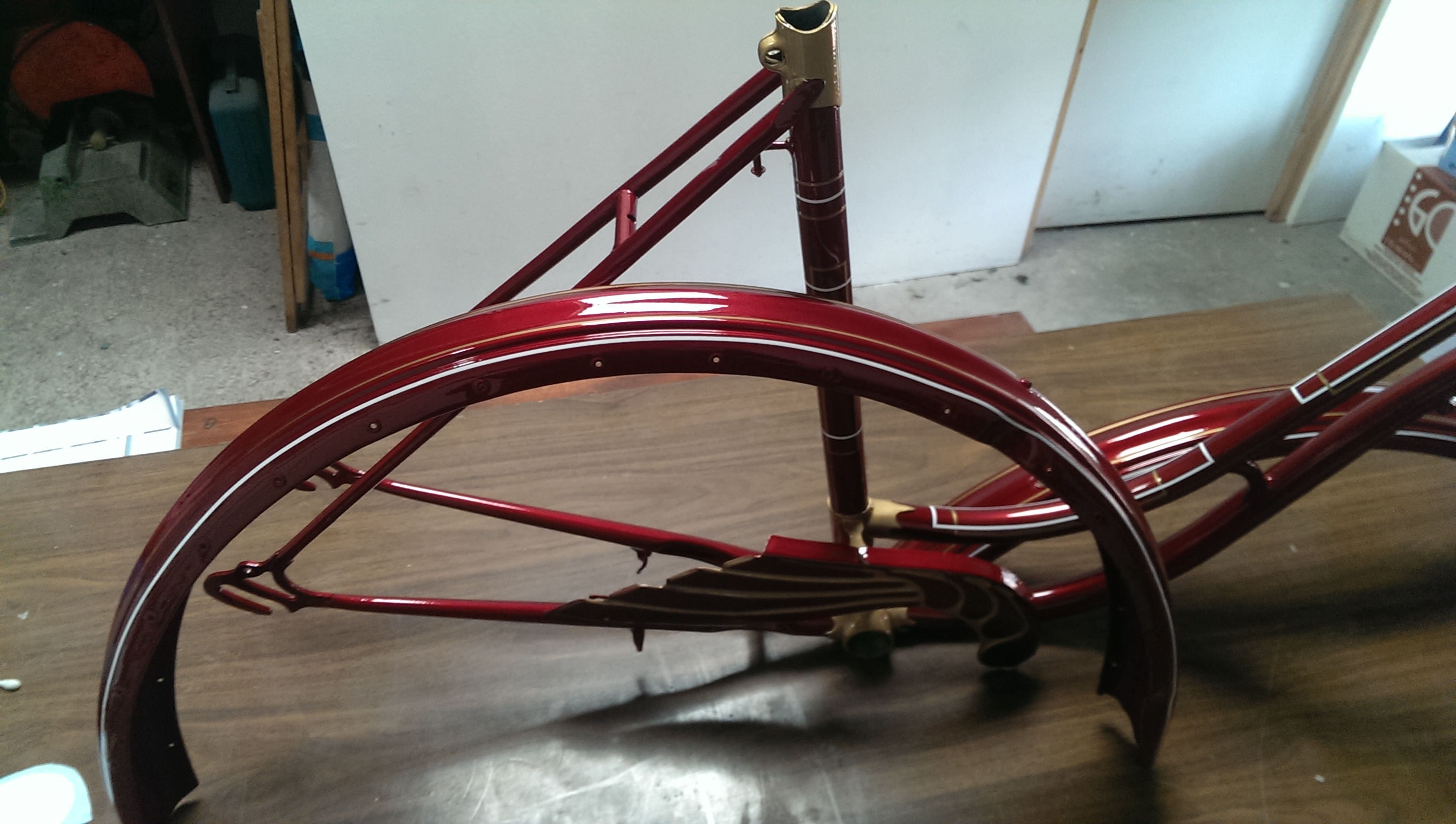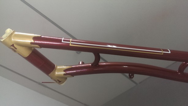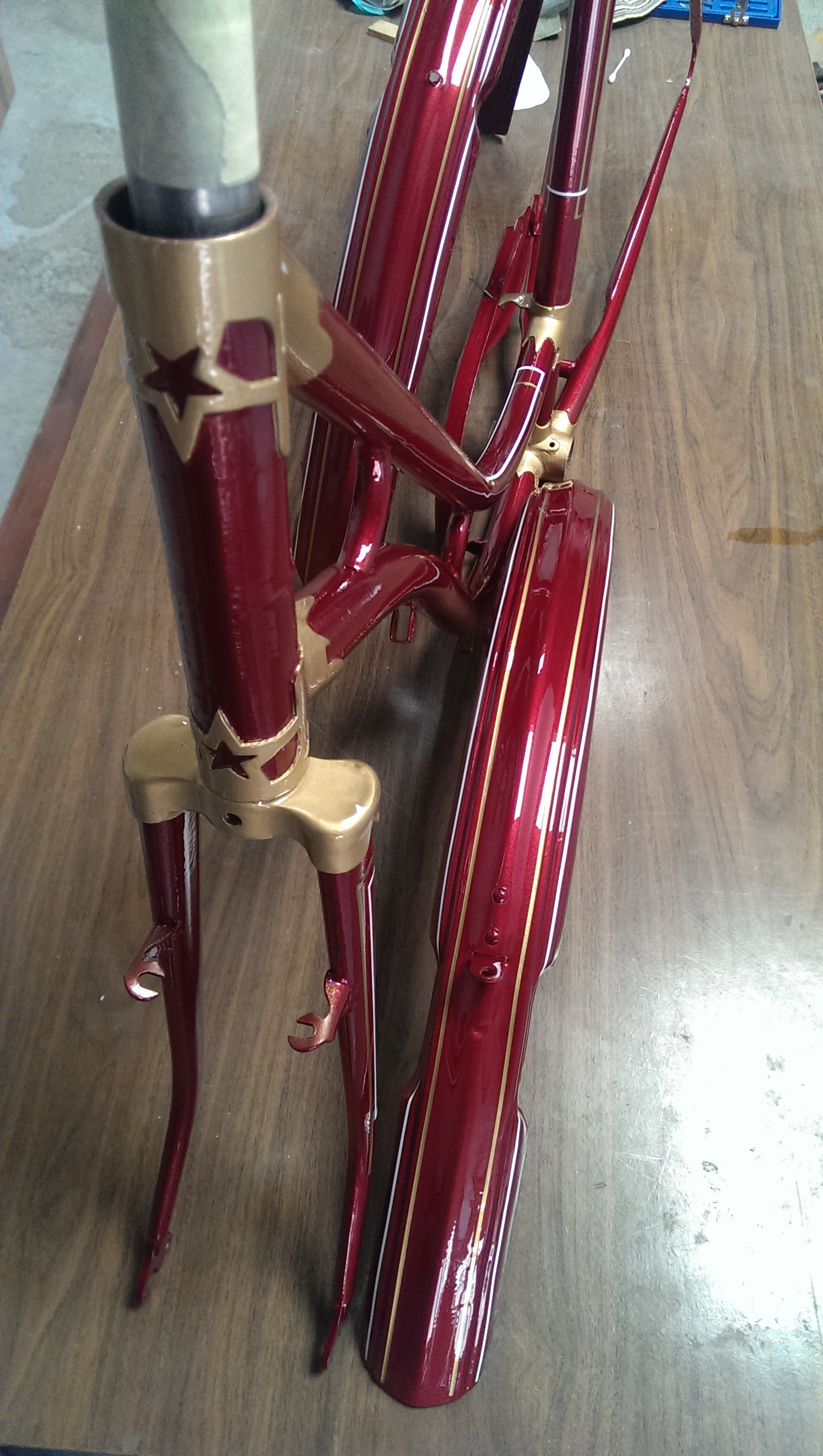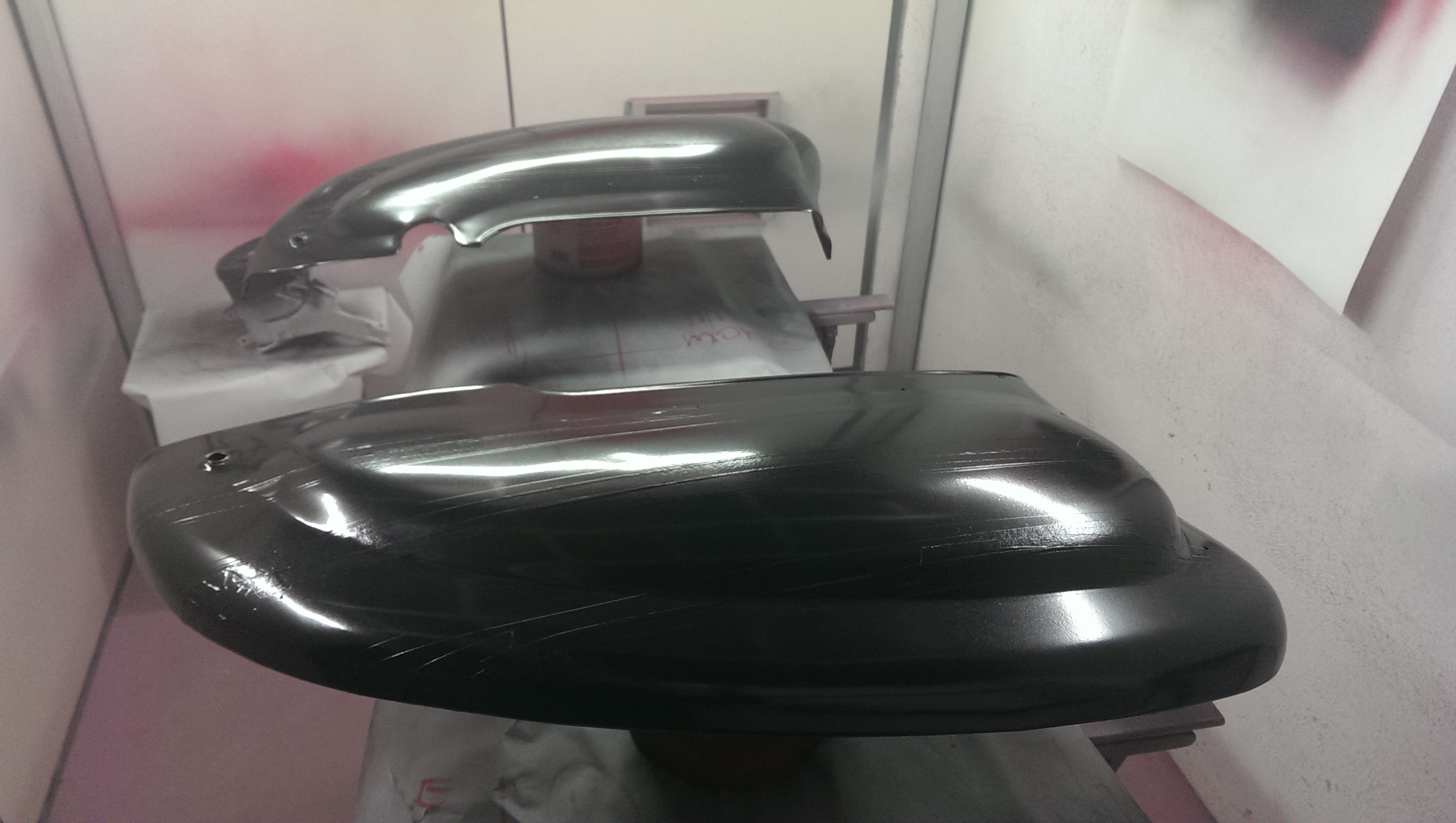 Partimos de un cuadro modelo «Señora Standard»en buenas condiciones, con pequeñas abolladuras que reparamos con masilla de carrocero y completamente lijado por el propietario, un trabajo en chapaviva!