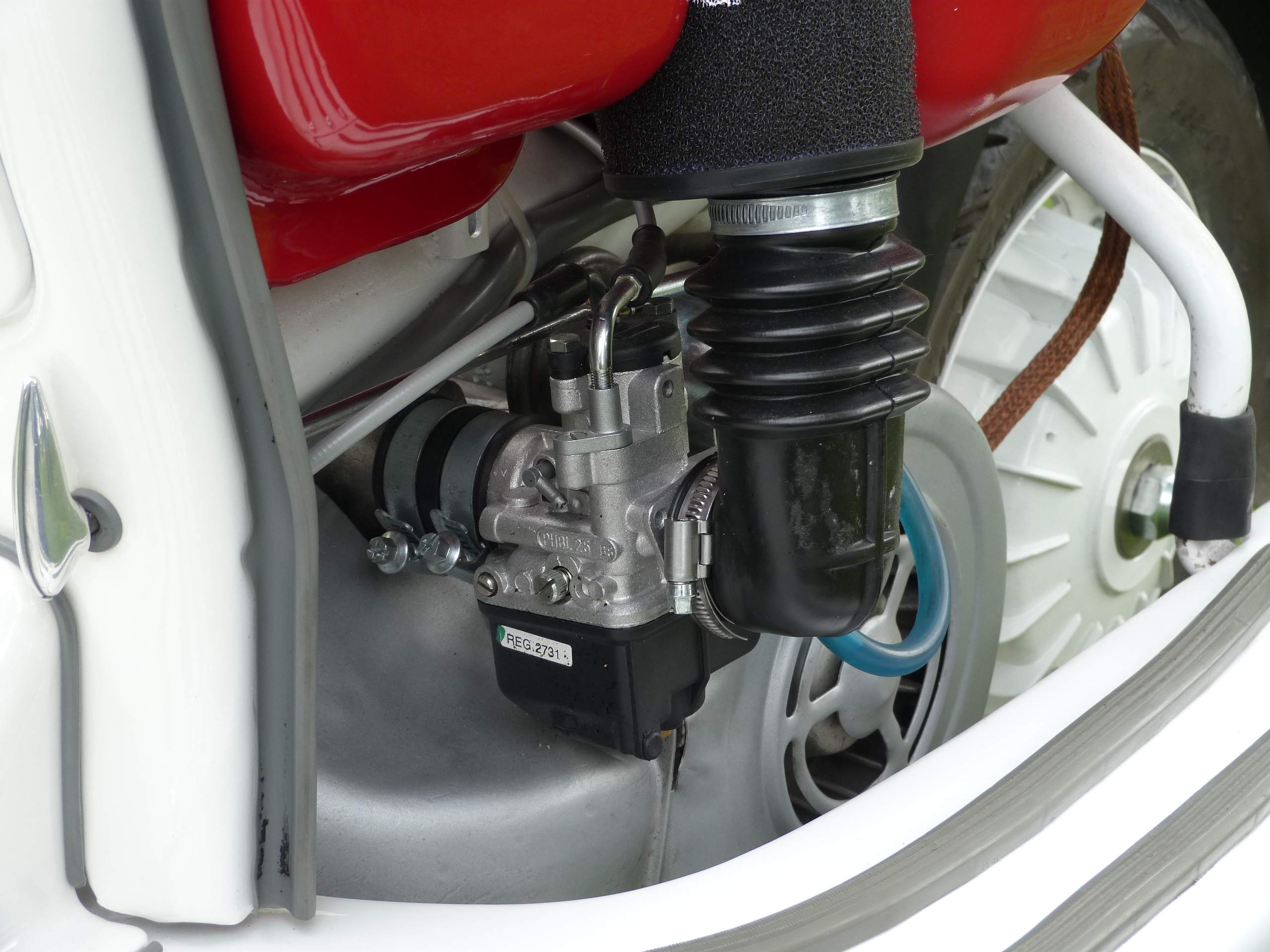 En la parte de abajo de la caja del carburador podeis ver el agujero más pequeño, por el que sale el aceite al carter, menudo viaje hace, eh?