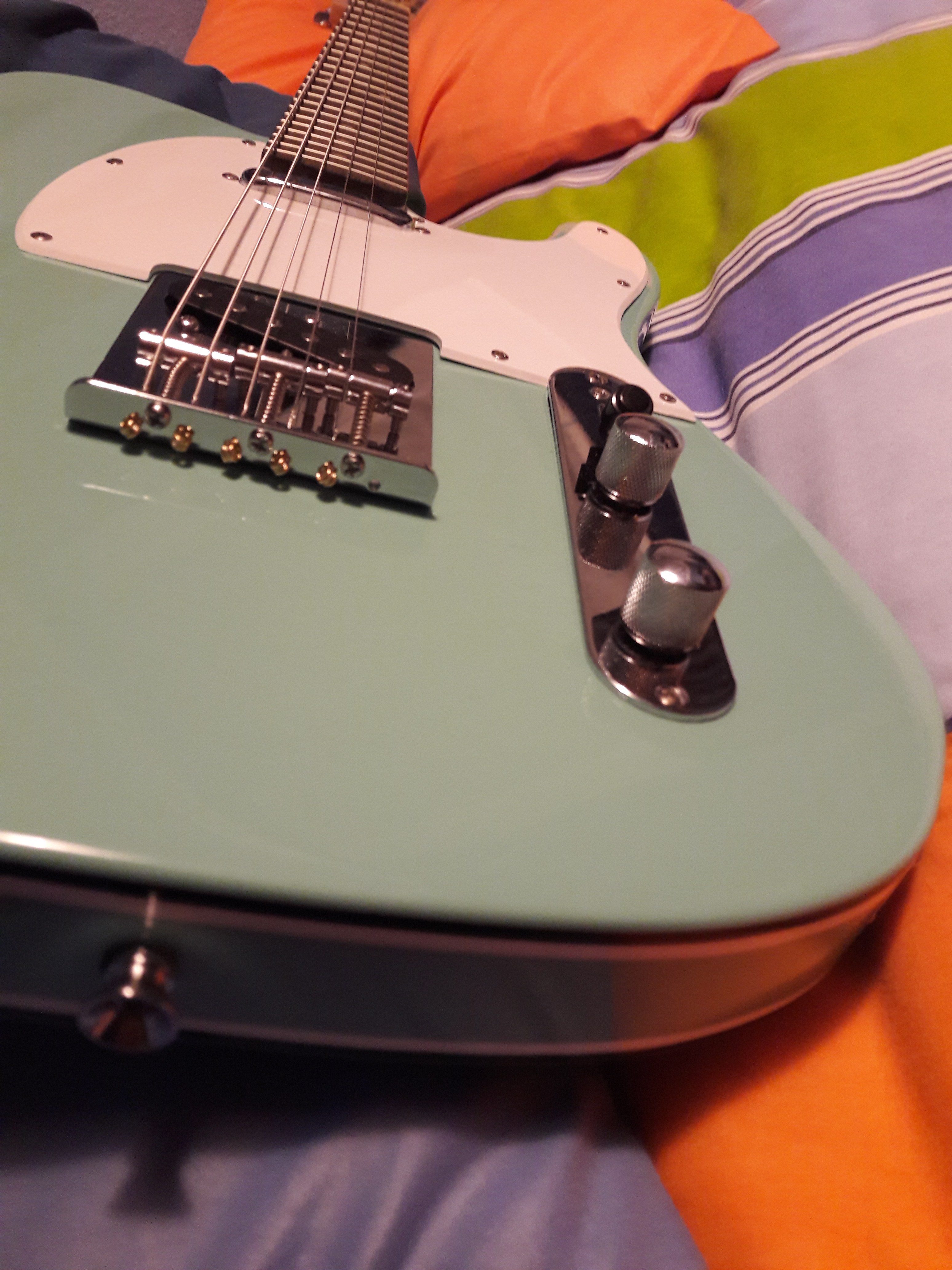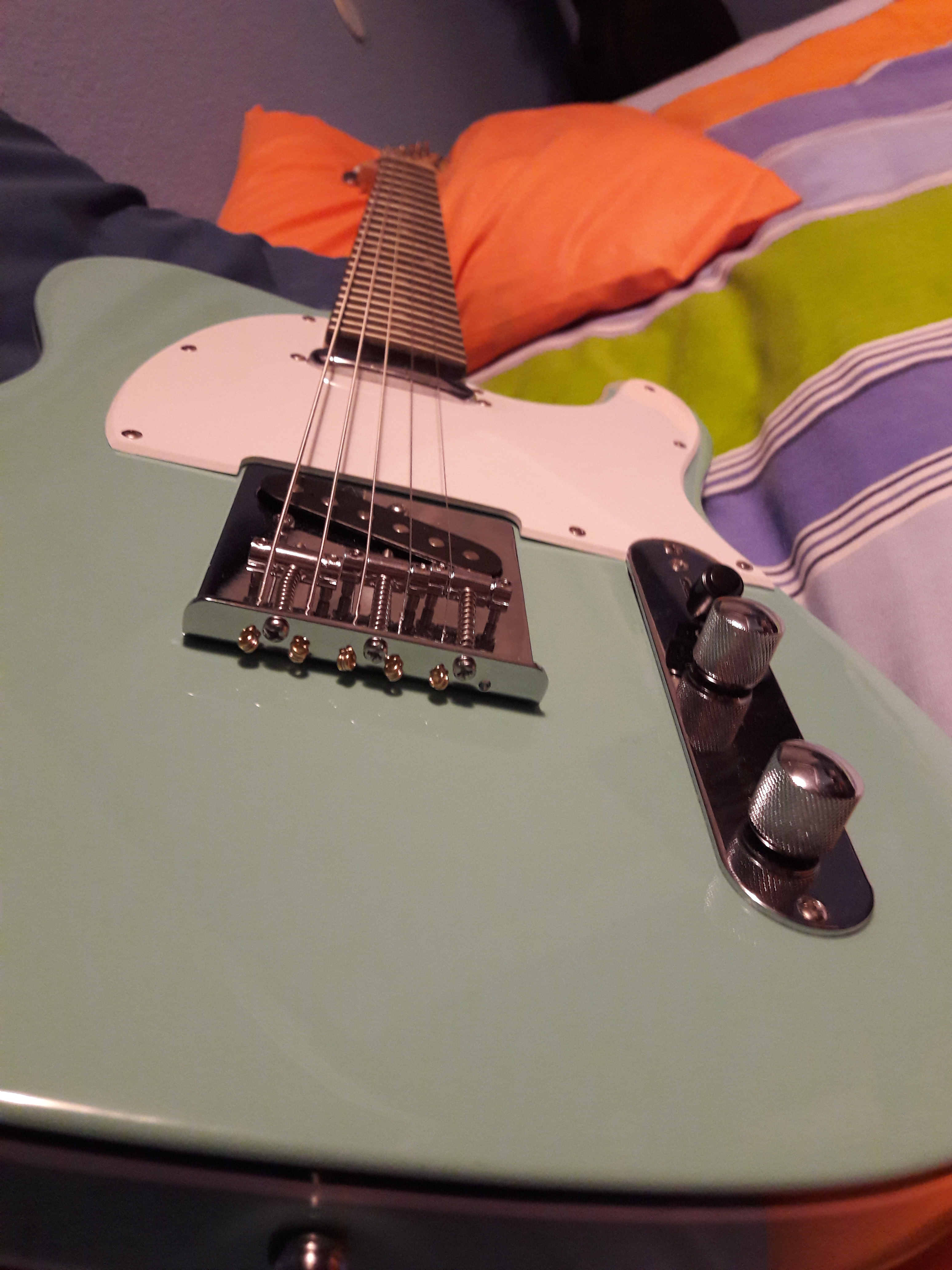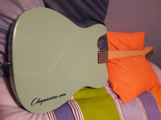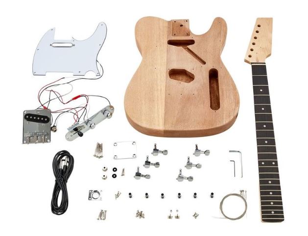 La guitarra viene en piezas y es el usuario el que monta el conjunto. He de decir que aún siendo un kit muy económico, la calidad de las piezas, maderas y el resultado final es muy satisfactorio.