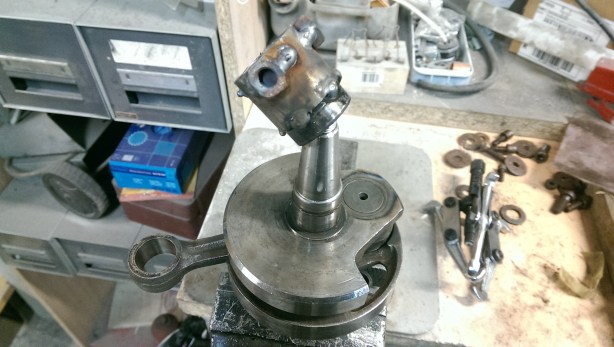 Para montar el nuevo, calentamos con pistola de calor el casquillo nuevo para que dilate, nos apoyamos en el viejo y luego golpeamos con un martillo de nylon sobre un vaso de diámetro adecuado, ojo con los golpes que podemos deformar el cigüeñal. A mi me gusta colocar un tornillo o una tuerca en los contrapesos para que no se cierren.